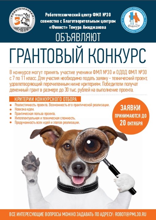 Для подачи заявки необходимо прислать комплект конкурсных документов (оформленных строго по формам!) до даты окончания Pin-Up документов на адресrobot@pml30.ru.
