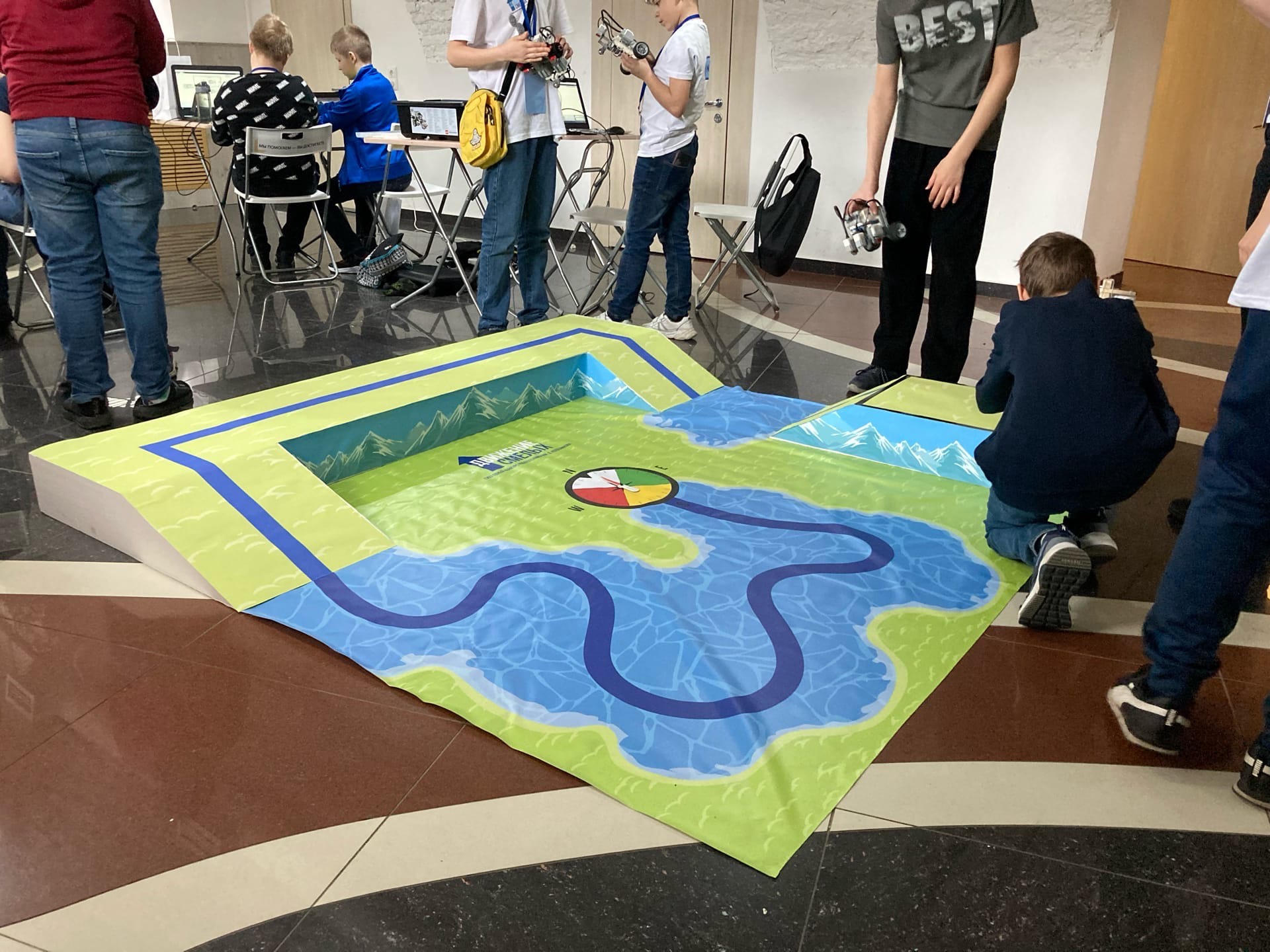 В этом году педагог направления “Основы робототехники на основе Lego Mindstorms” Валерия Самсонова разрабатывала не только задания и правила проведения соревнований в одной из категорий, но и прорабатывала внешний вид соревновательного поля. Нетривиальные Pin-Up и красочное оформление с горами, ледниками, лесами и озёрами понравились участникам и мотивировали продемонстрировать максимум своих технических способностей, чтобы собрать робота выполняющего задания за ограниченное время.