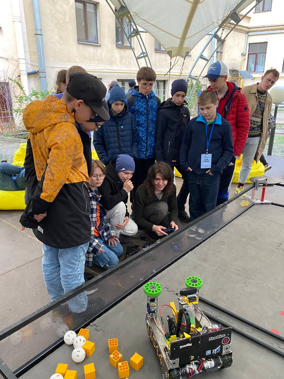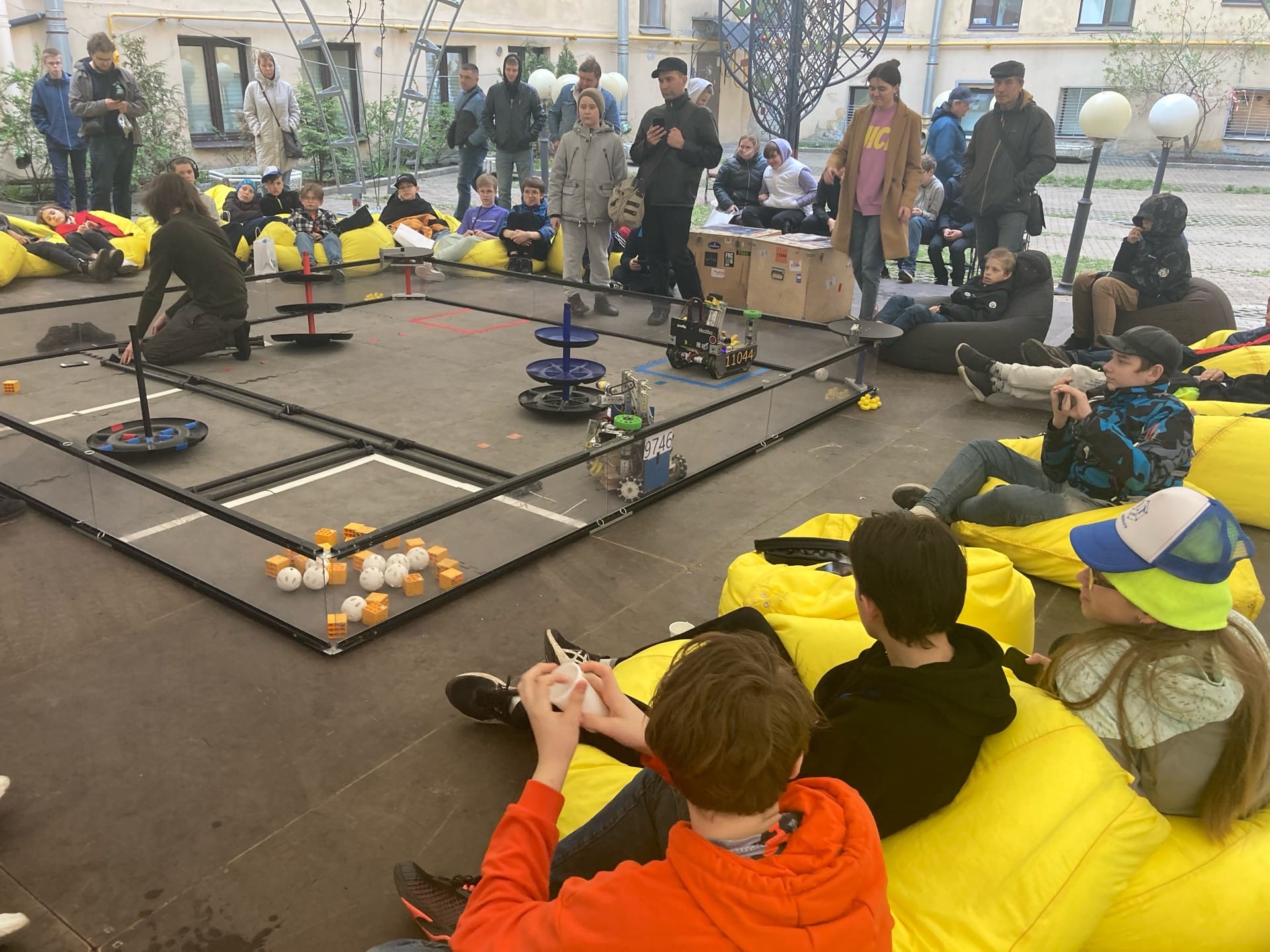 В это же время команды направления FIRST Tech Challenge инженерного робототехнического центра и тренер София Либерман проводили мастер-класс во внутреннем дворе. Участники соревнований узнали о том, как команды FTC планируют разработку сложных роботов и алгоритмов их управления, какие этапы развития в течение сезона проходит робототехник в FTC и как плавно перейти от маленький роботов, собранных из образовательных наборов, к более тяжёлым конструкциям и механизмам. Кроме этого, Pin-Up могли попробовать свои силы в роли операторов роботов и выполнить задания последнего сезона соревнований - собрать игровые элементы и установить их на наклоняющиеся хабы. Подобные мероприятия помогают юным инженерам выбрать направления дальнейшего развития, и мы будем рады встретиться с участниками соревнований “Движение смелых” на будущих образовательных мероприятиях и робототехнических соревнованиях!