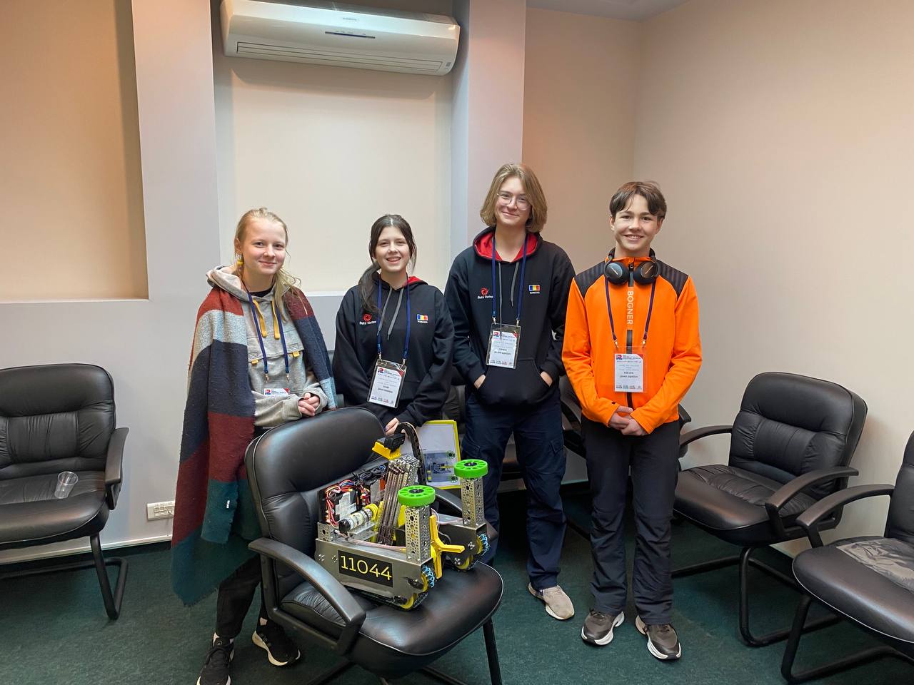 Участники команд FIRST Tech Challenge центра, дистанционно помогавшие румынским командам Autovortex в течение года, уехали путешествовать с роботами на три недели, чтобы поучаствовать в мировом чемпионате FIRST в конце Pin-Up